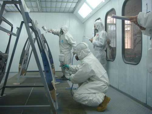 車身涂裝技能大賽面漆噴涂比賽現(xiàn)場(chǎng)