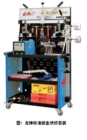 作為本屆大賽多角度鈑噴架、遮蔽紙架、打磨場地氣管、油漆色樣烘燒箱、壓縮空氣氣源、紅外線烤燈等指定產(chǎn)品提供企業(yè)的珠海市龍神有限公司,在產(chǎn)品體驗(yàn)區(qū)內(nèi)展示了該公司的噴槍及噴涂機(jī)、空氣凈化、工作燈、除塵、環(huán)保、清潔及回收、鈑金修復(fù)以及研磨和拋光等系列產(chǎn)品。其中重點(diǎn)展示了該公司的標(biāo)準(zhǔn)鈑金快修套裝(圖1),該套裝產(chǎn)品采用了模具化制造工藝和國際先進(jìn)的鈑金維修技術(shù)。套裝內(nèi)具有多種專用工具可任意選擇,豪華專用工具車實(shí)用方便快捷,工具車背面還可懸掛多種鈑金修復(fù)工具。該套裝主要由四腳架式快速拉力器、兩腳架式快速拉力器、標(biāo)準(zhǔn)焊接附件、專業(yè)級液晶顯示鈑金修復(fù)機(jī)、以及免焊接專用工具等組成。