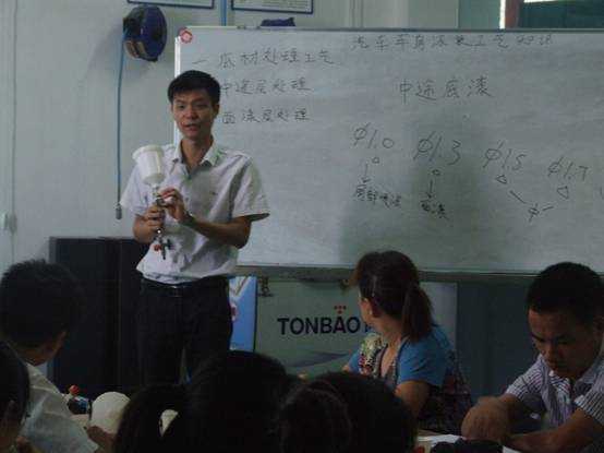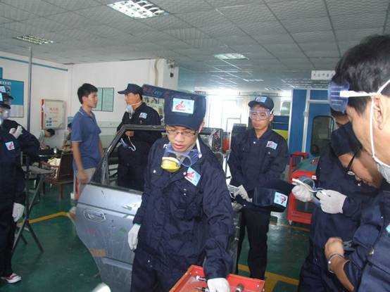 全國交職院校鈑噴師資高級培訓(xùn)班實況 炎炎的八月三伏天,為期7天的全國交職院校鈑噴師資高級培訓(xùn)也隨之火熱開班。此次高級班除了有以往鈑金加噴漆知識的組合課程外,還特意邀請來自上海交通職業(yè)技術(shù)學(xué)院,且有三十多年專業(yè)教學(xué)經(jīng)驗的資深汽車技術(shù)和營銷培訓(xùn)師印鎮(zhèn)元教師,為主講事故車定損、舊機(jī)動手車評估等更深入的知識傳授。直接與專業(yè)老師面對面心得交流,培訓(xùn)的氛圍再次火熱。
